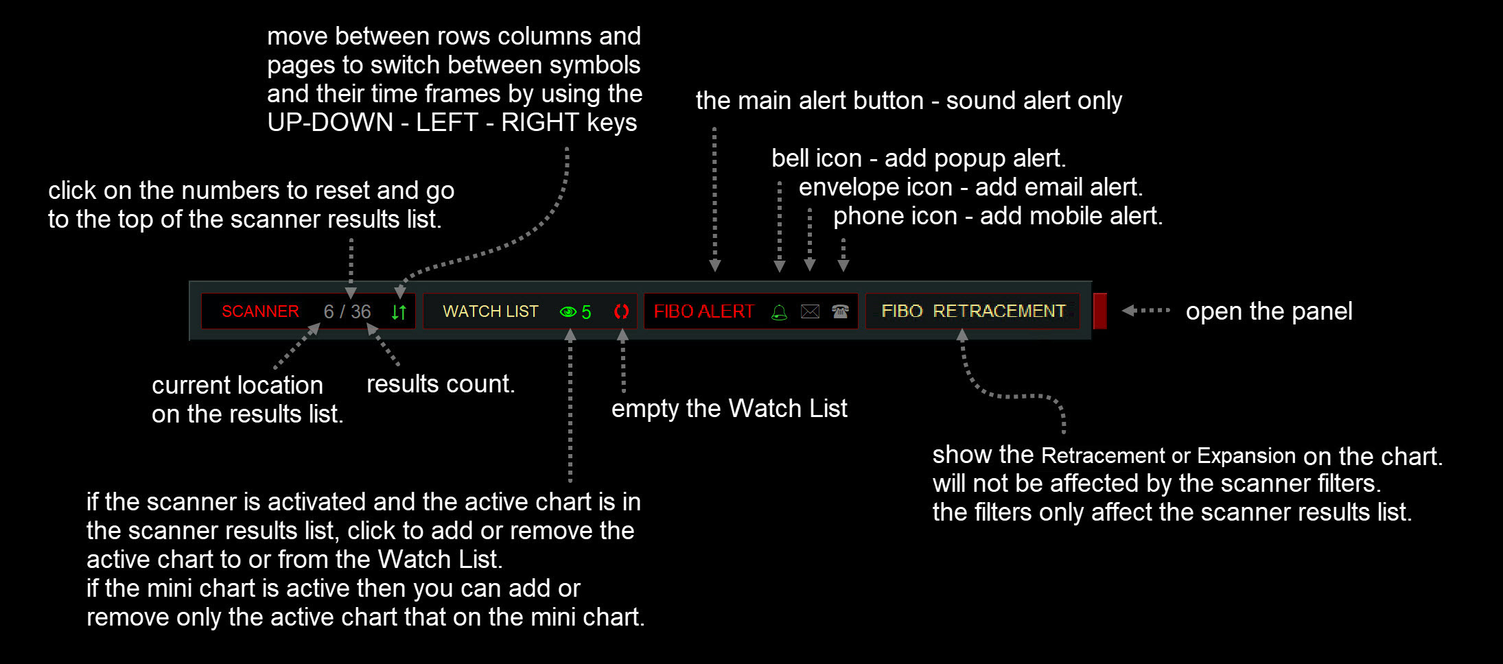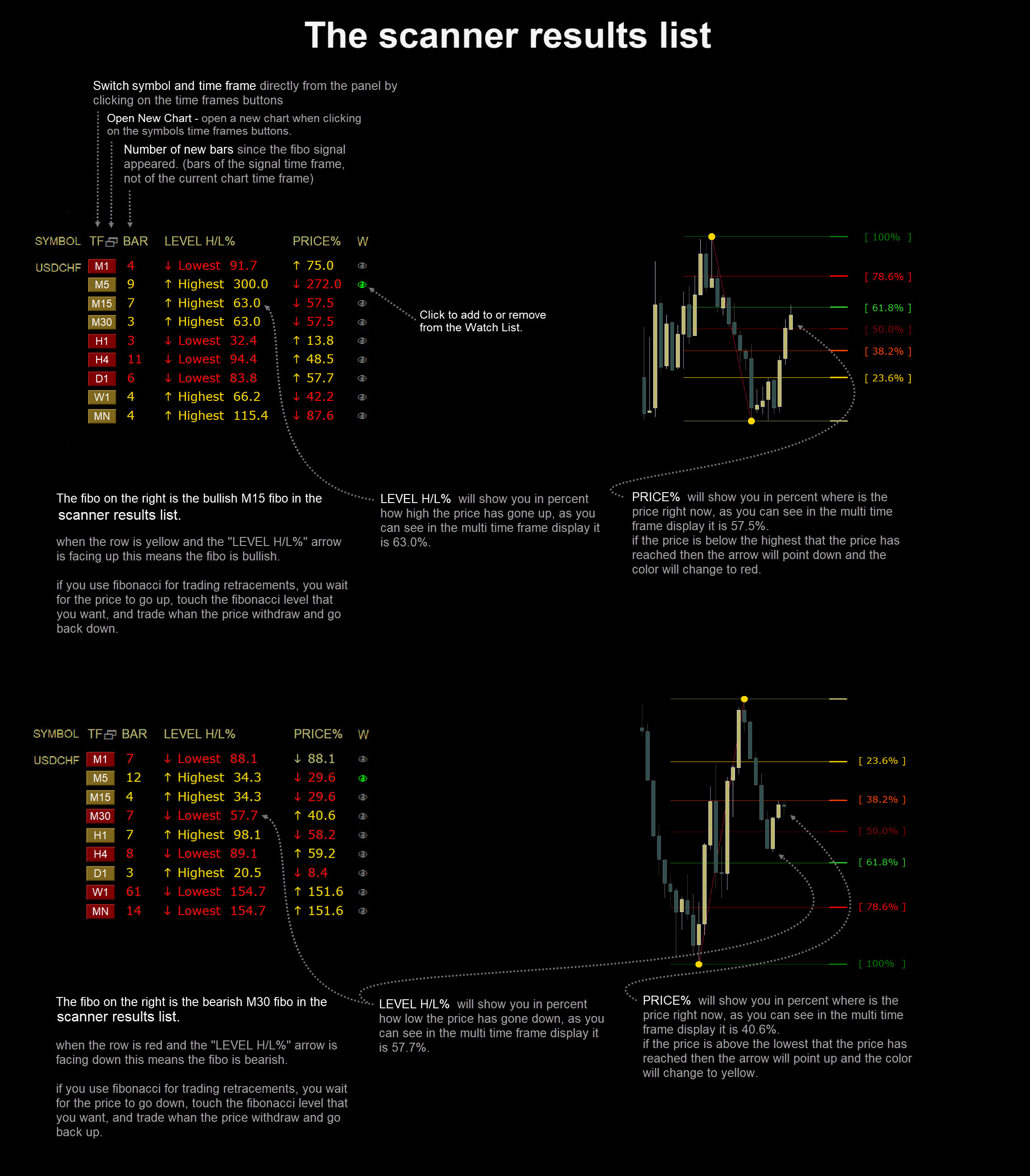 The Fibonacci Scanner displays all detected Fibonacci on one convenient panel.